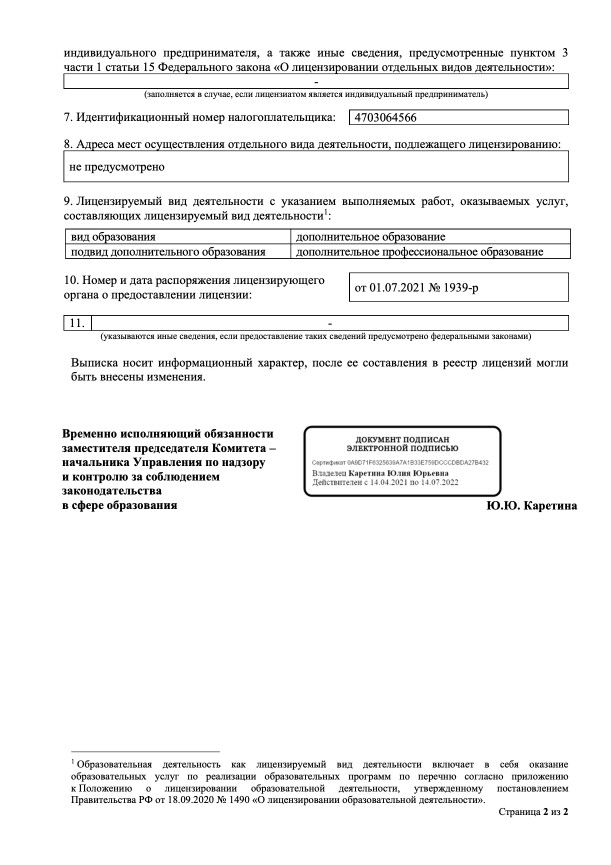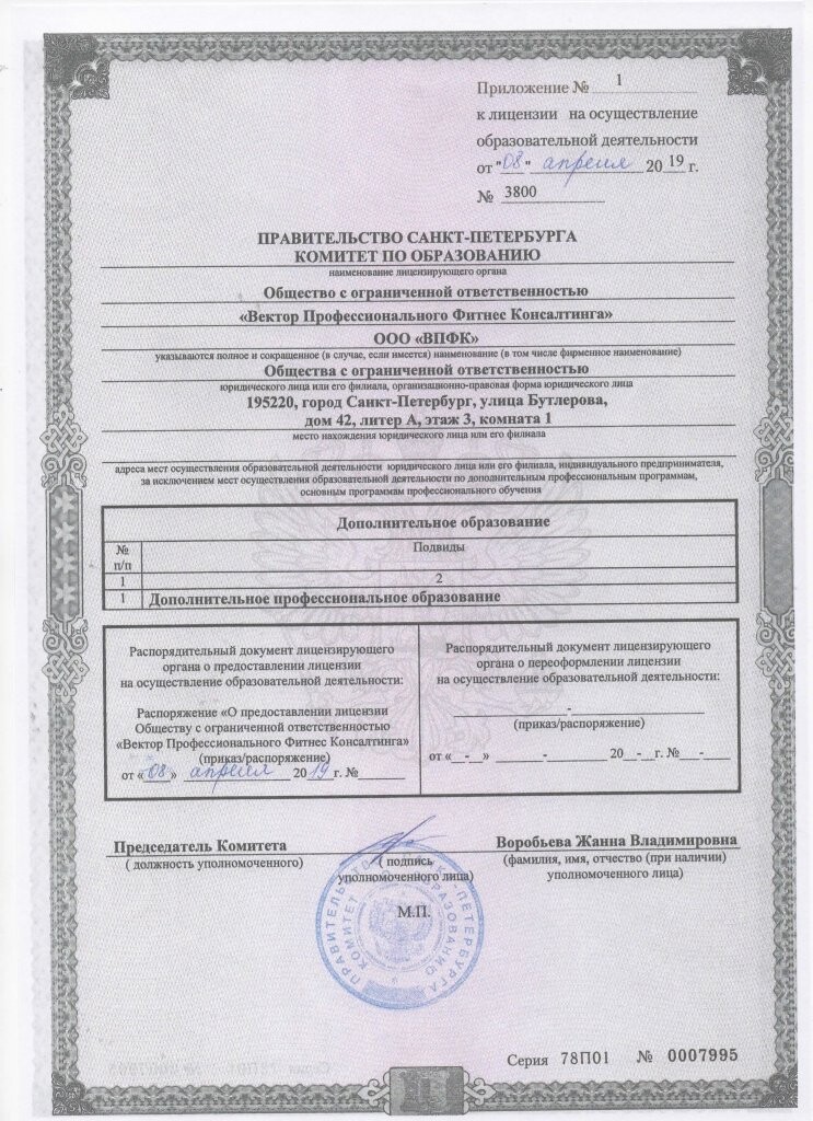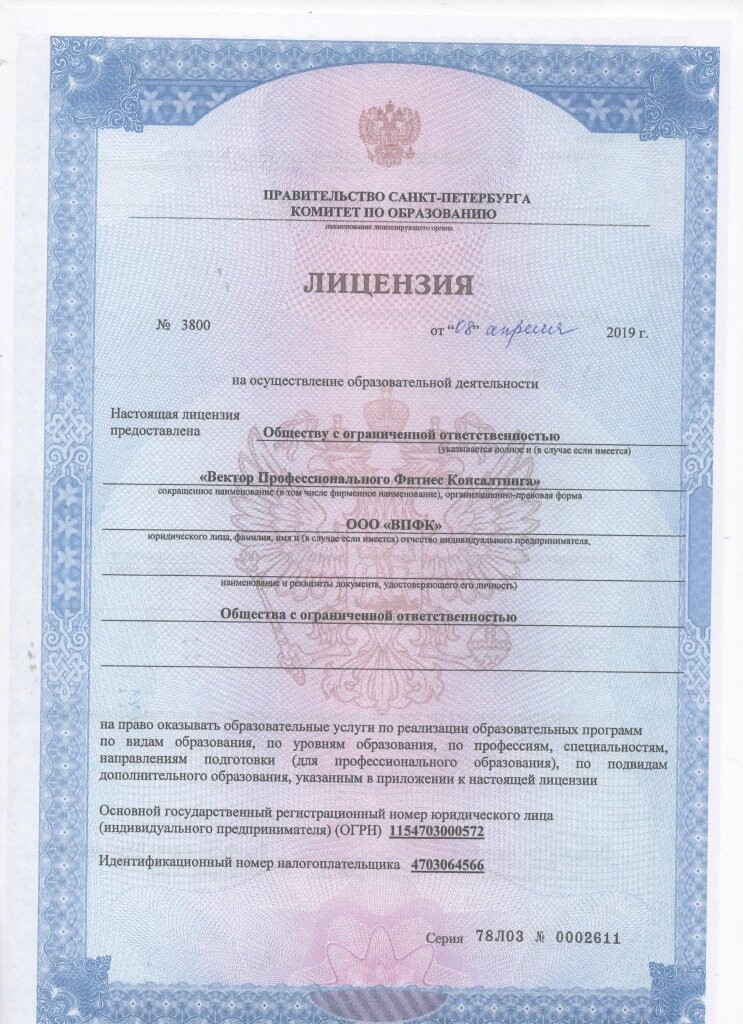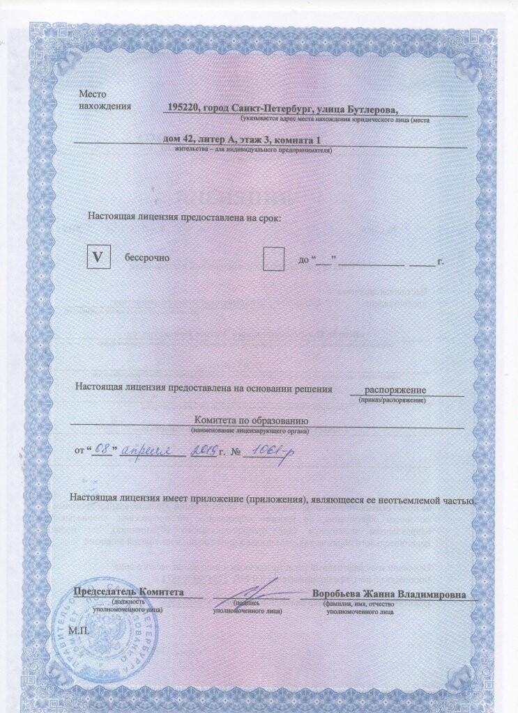 Лицензия о ведении образовательной деятельности