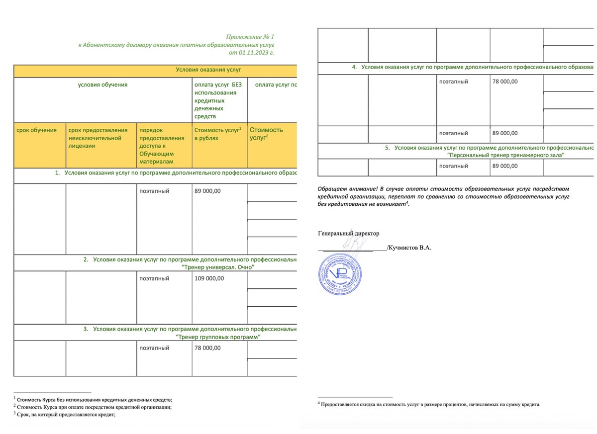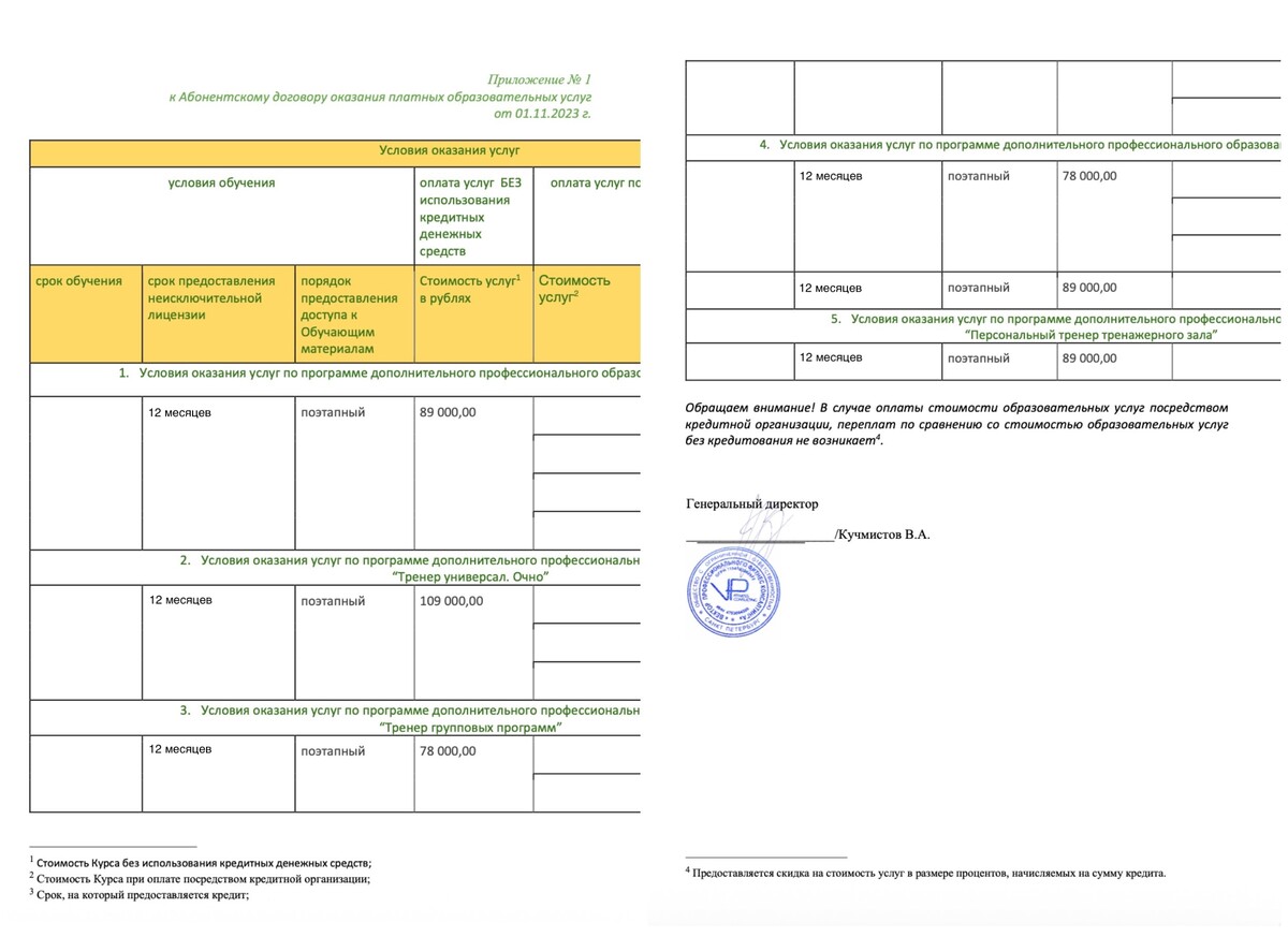к Абонентскому договору оказания платных образовательных услуг от 01.11.2023 г.
